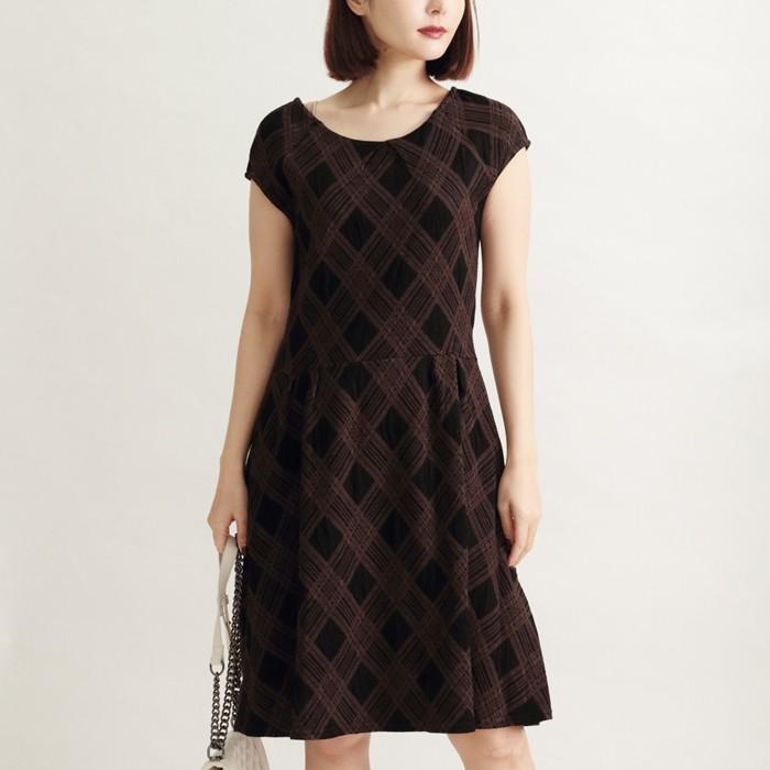 正規品販売 イージーケア 幾何学チェック柄ジャージーワンピース